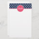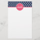 Navy Blue and Hot Pink Quatrefoil Monogram Stationery