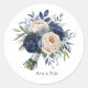 Navy Blue and Ivory Floral Wedding Classic Round Sticker