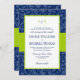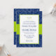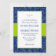 Elegant navy and lime wedding invitations. Featuring a modern damask swirl pattern. Easily personalise for your wedding day.