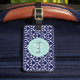 Navy Blue and Mint Heartlocked Print Luggage Tag