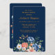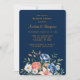 Navy Blue and Orange Peony Wedding Shower Invitation