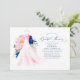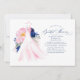 Pink and navy blue watercolor flowers wedding dress bridal shower invitations