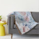 A quality printed throw has its advantages. This is a much finer weave throw than its loopier cousins, and though lighter, it is worth the investment for custom room accessorizing. The back is much prettier than the typical brown, and the fringe on the long sides very vivid, the selvage nicely done. Before photographing, I washed the throw in cold water, delicate, with a thicker woven throw the same size. On tumble dry low, this throw was dry in half the time as the other. This is a very practical quality if you use throws for furniture covers or to wrap up in frequently. The sleekness of the fabric makes it a great layer for accenting or protecting without the feeling of sitting on too much stuff. Perfect for napping or when you feel a light chill coming on. The color printing is beautiful and on this fabric, matched the design and color of my Photoshop image. This is an advantage for blending room fabrics and colors. The fringe on the short sides prints the colors from the design image and therefore varies from the side fringe. I streaked a white fractal line through the plaid pattern to give the illusion of weaving. This printed as crisp as an illusory thread, and put some white in the short side fringe, showing another advantage of print vs loomed- for artistic purposes, line lines, detail, and color integrity can be planned and preserved. My loomed throws have color limitations and more of a needlepoint texture. Print throws reproduce an exact image. The throw felt a little stiff straight out of the package, but this went away in the first delicate wash. Of course I searched the wash water for ink or bleeding and there was none.