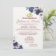 Navy Blue and Pink Floral Wedding Invitation