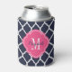 Navy Blue and Pink Moroccan Quatrefoil Monogram Can Cooler