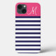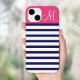 Navy Blue and Pink Preppy Stripes Custom Monogram Case-Mate iPhone Case