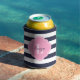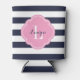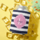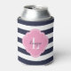 Navy Blue and Pink Preppy Stripes Monogram Can Cooler