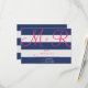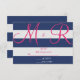 Navy Blue and Pink Stripe RSVP Card