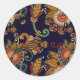 Navy Blue and Red Paisley Pattern Classic Round Sticker