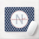 Navy Blue and Red Quatrefoil Monogram Mouse Pad