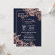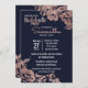Navy Blue and Rose Gold Floral Bachelorette Party Invitation