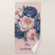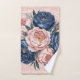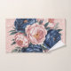 Navy Blue and Rose Gold Floral Bath Towel Set