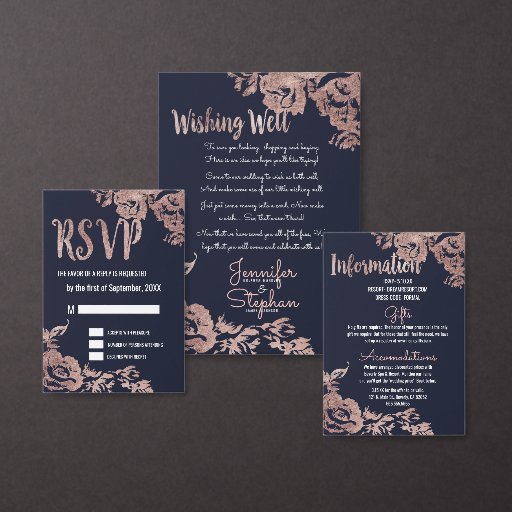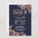 Navy Blue and Rose Gold Floral Sweet 16 Invitation