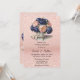 Navy Blue and Rose Gold Floral Wedding Invitation