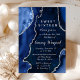 Navy Blue and Silver Agate Marble Sweet Sixteen Invitation