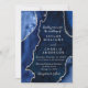 Navy Blue and Silver Agate Marble Wedding Invitation