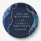 Navy Blue and Silver Agate Marble Wedding Paper Plate