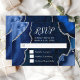 Navy Blue and Silver Agate Marble Wedding RSVP Card