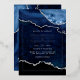 Navy Blue and Silver Agate Wedding Foil Invitation