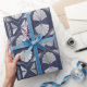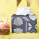 Navy Blue and Silver Art Deco Shell Pattern Wrapping Paper