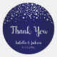 Navy Blue and Silver Confetti Dots Classic Round Sticker