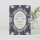 Navy Blue and Silver Elegant Ivory Floral Wedding Invitation