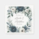 Navy Blue and Silver Elegant Ivory Floral Wedding Napkin