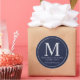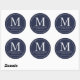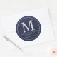 Navy Blue and Silver Elegant Monogram Business Classic Round Sticker