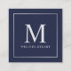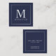 Navy Blue and Silver Elegant Monogram Square Business Card