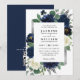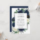 Navy Blue and Silver Floral QR Code Wedding Invitation