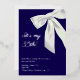 Turn 30 in timeless style with this stunning navy blue and real silver foil invitation. Featuring a luxurious silver bow on a deep navy background, this card blends sophistication with sparkle. The handwritten “It’s my 30th!” headline gives it a personal, elegant flair — perfect for a classy dinner, cocktail event, or glamourous party.
