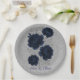 Navy Blue and Silver Glitter Leaves Wedding Paper Plate