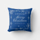 Navy Blue and Silver Snowflake Script Christmas Cushion