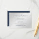 Inform your guests about hotel accommodation or provide them with other wedding details with this minimalist info card in navy blue and silver colours. Easily personalise online. Matching items available to complement this elegant navy blue and silver accommodation enclosure card.