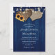 Rustic floral wedding invitation featuring two burlap hearts on a barn wood background adorned with sunflowers. Perfect card design for inviting your guests to your navy blue rustic wedding party.