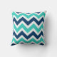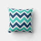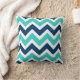 Navy Blue and Teal and White Chevron Pattern Zigzags Pillow.