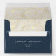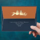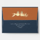 Elevate your wedding invitations with these elegant 5x7 terracotta and navy blue envelopes. Featuring a return address, a unique gold couple of love birds, and faux gold flowers inside, these envelopes add a touch of modern charm and romance to your special day.