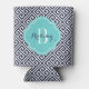 Navy Blue and Turquoise Greek Key Monogram Can Cooler