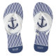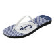 Navy Blue and White Vertical Stripes with navy blue Anchor in the centre of the flip flops. Add your initials at the bottom for a custom look.