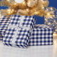 A wrapping paper designed with a navy blue and white check plaid pattern. Customise the white background among other options.