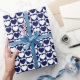 Navy Blue and White Chequered Pattern With Hearts Wrapping Paper