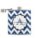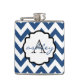 Navy Blue and White Chevron Monogram Flask
