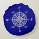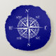 Navy Blue And White Coastal Decor Compass Rose Round Cushion