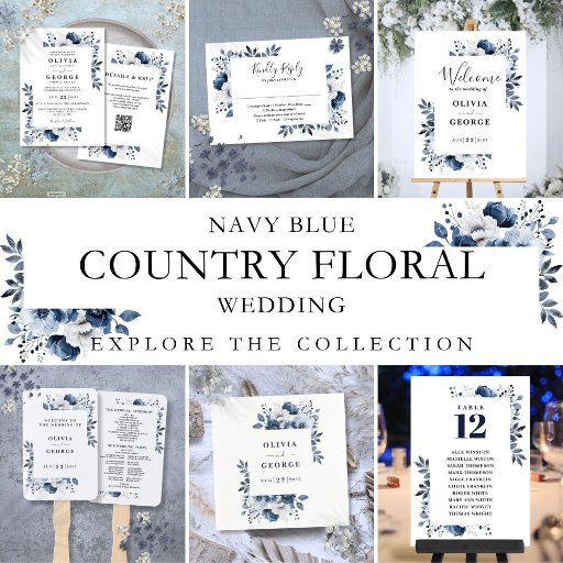 Navy Blue And White Modern Floral Wedding SuiteDesigned by Pure Piglet Designs