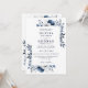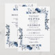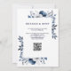 Navy Blue and White Elegant Floral QR Code Wedding Invitation