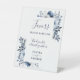 Navy Blue And White Elegant Floral Wedding Favours Pedestal Sign