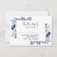 Navy Blue And White Elegant Floral Wedding RSVP Card