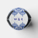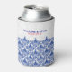 Elegant navy blue vintage floral lacy damasks, customisable wedding can cooler design. Touch of pink. Customisable monogram on the bottom part.