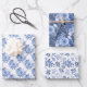 Navy Blue and White Floral Leaf Wrapping Paper Sheet