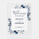 This elegant navy blue and white floral wedding welcome acrylic sign can be personalised with your information in modern typography. Designed by Thisisnotme©